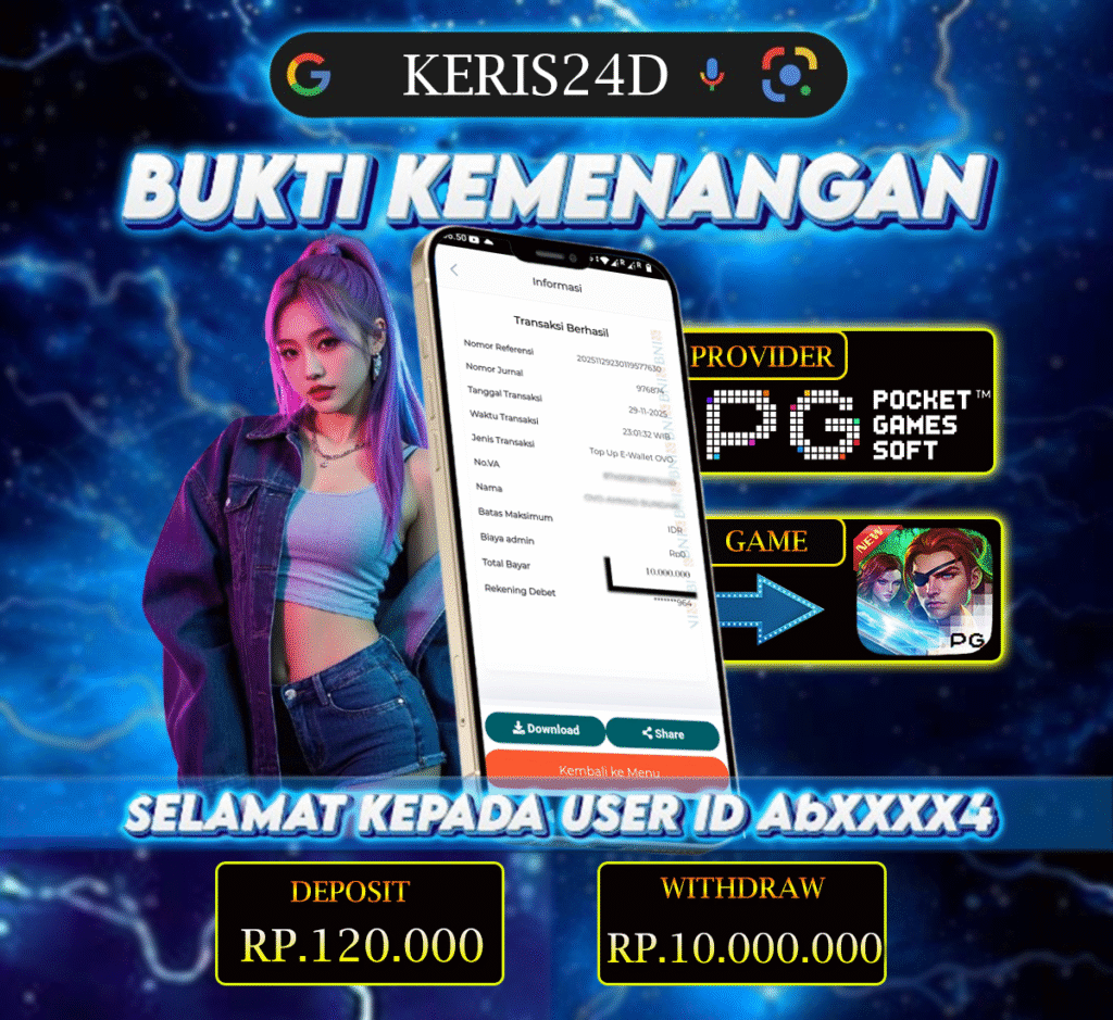 Setiap hari, member KERIS24D berhasil meraih jackpot besar dari berbagai provider slot ternama yang kami sediakan, seperti Pragmatic Play, Habanero, PG Soft, dan masih banyak lagi. Kami secara rutin menampilkan bukti screenshot atau rekapan kemenangan yang berhasil diraih, mulai dari kemenangan ratusan ribu hingga puluhan juta rupiah. Semua slip kemenangan ini kami hadirkan untuk membuktikan bahwa di KERIS24D, peluang menang itu nyata.