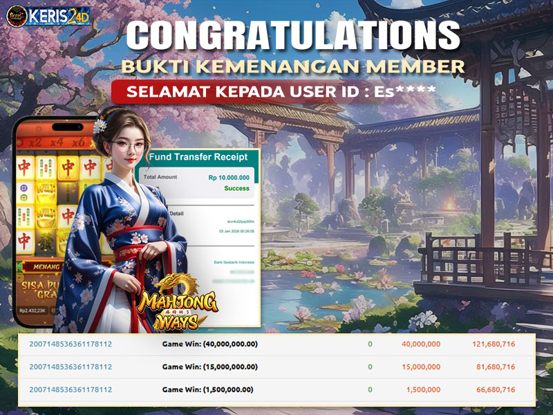 Setiap hari, member KERIS24D berhasil meraih jackpot besar dari berbagai provider slot ternama yang kami sediakan, seperti Pragmatic Play, Habanero, PG Soft, dan masih banyak lagi. Kami secara rutin menampilkan bukti screenshot atau rekapan kemenangan yang berhasil diraih, mulai dari kemenangan ratusan ribu hingga puluhan juta rupiah. Semua slip kemenangan ini kami hadirkan untuk membuktikan bahwa di KERIS24D, peluang menang itu nyata.