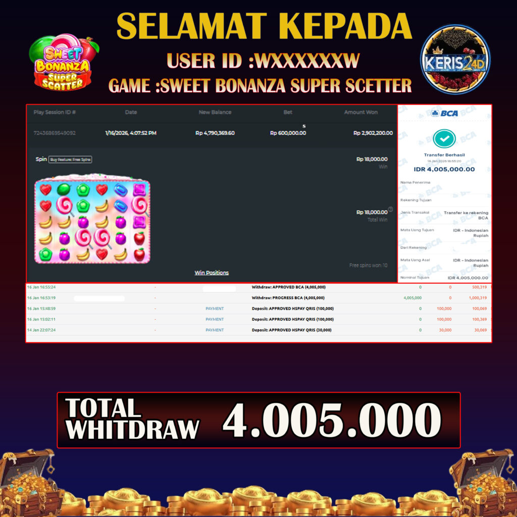 JACKPOT SLOT Sweet Bonanza Super Scatter 16 JANUARI 2026