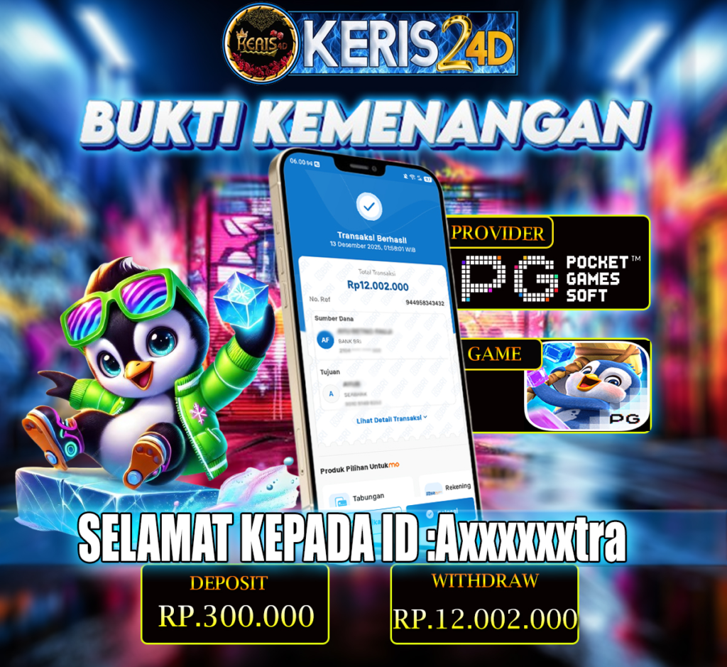 Setiap hari, member KERIS24D berhasil meraih jackpot besar dari berbagai provider slot ternama yang kami sediakan, seperti Pragmatic Play, Habanero, PG Soft, dan masih banyak lagi. Kami secara rutin menampilkan bukti screenshot atau rekapan kemenangan yang berhasil diraih, mulai dari kemenangan ratusan ribu hingga puluhan juta rupiah. Semua slip kemenangan ini kami hadirkan untuk membuktikan bahwa di KERIS24D, peluang menang itu nyata.